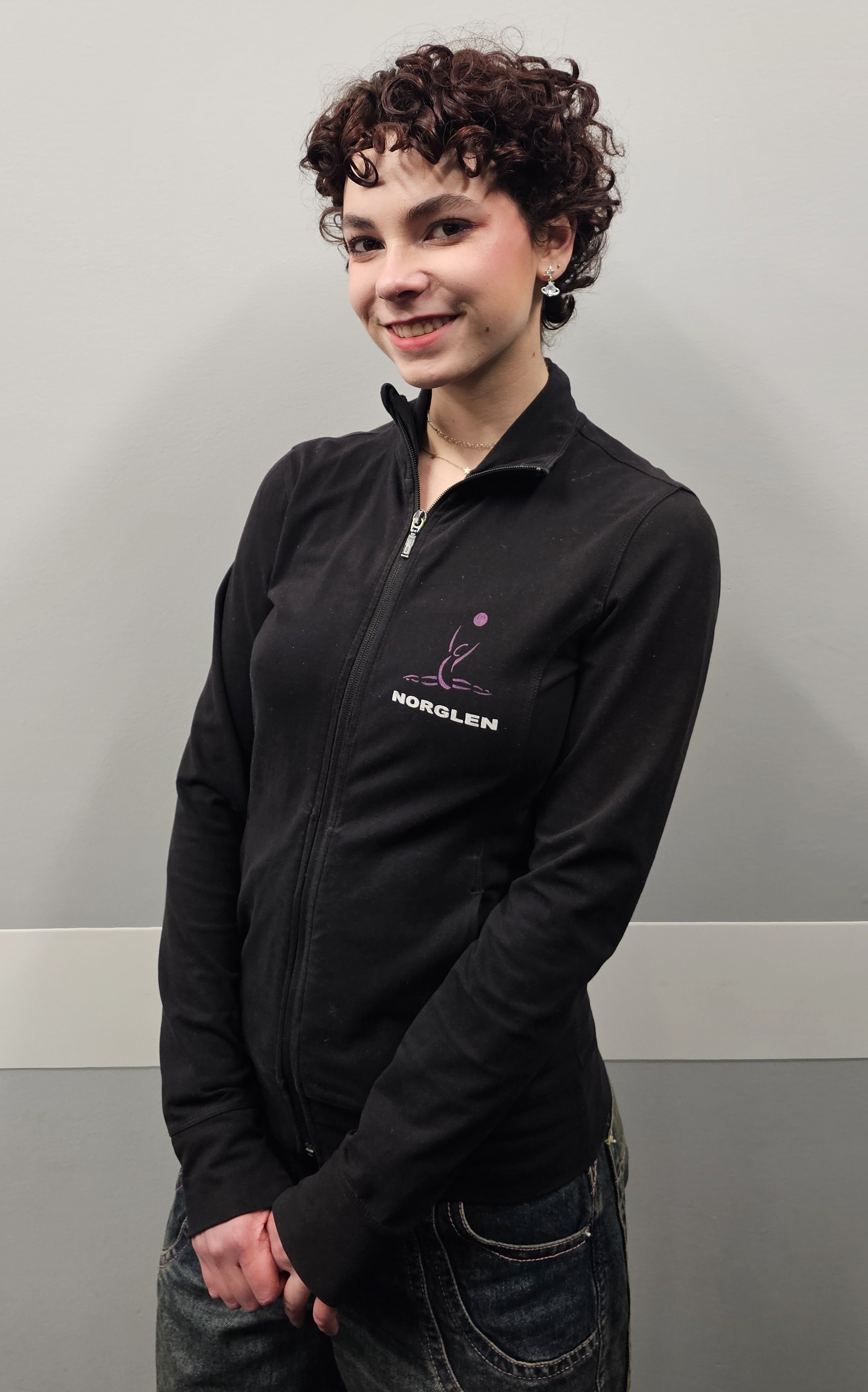 When I was first put into extracurriculars, I did ballet and jazz dance, but when I was around seven, I wanted to do gymnastics instead. My parents put me into rhythmic gymnastics at a few other clubs before finding Norglen in fall 2019. I started in the Junior Show Group and was on that team through Covid. This is my third year on the Senior Show Group.